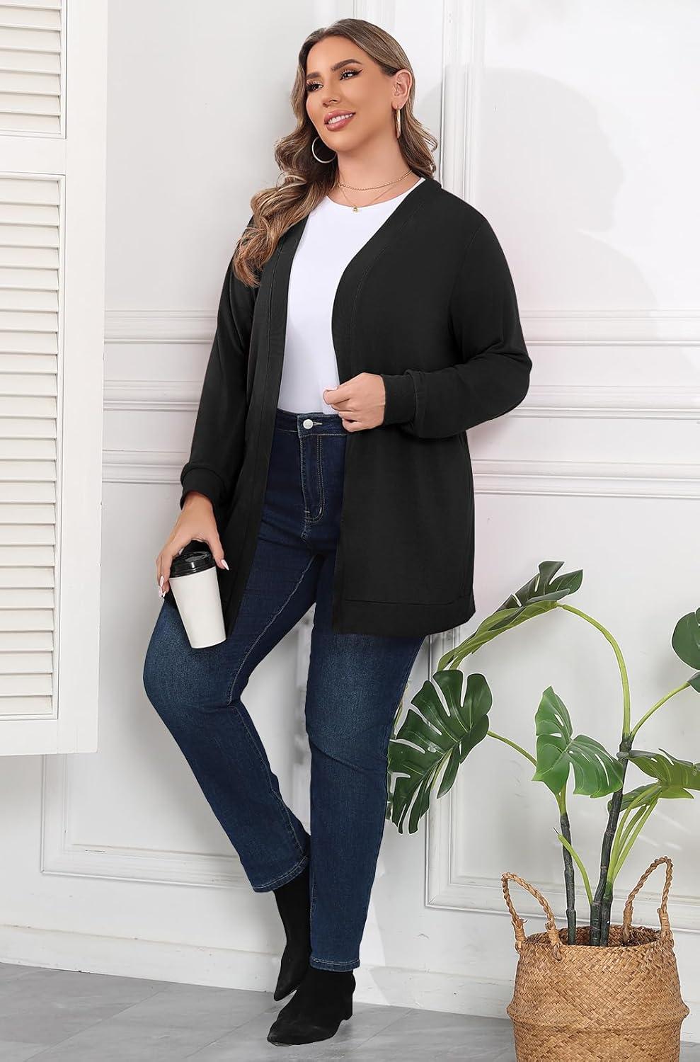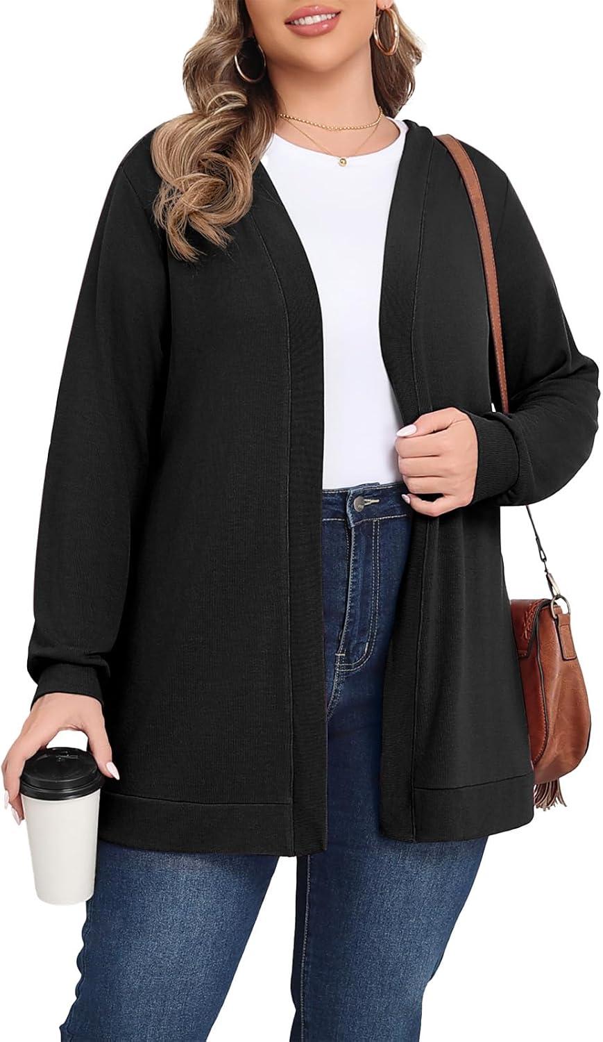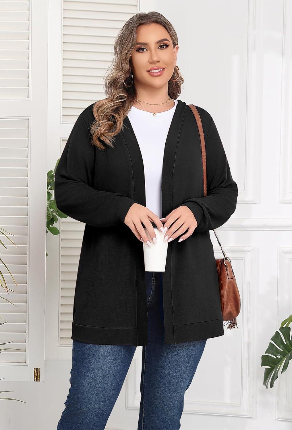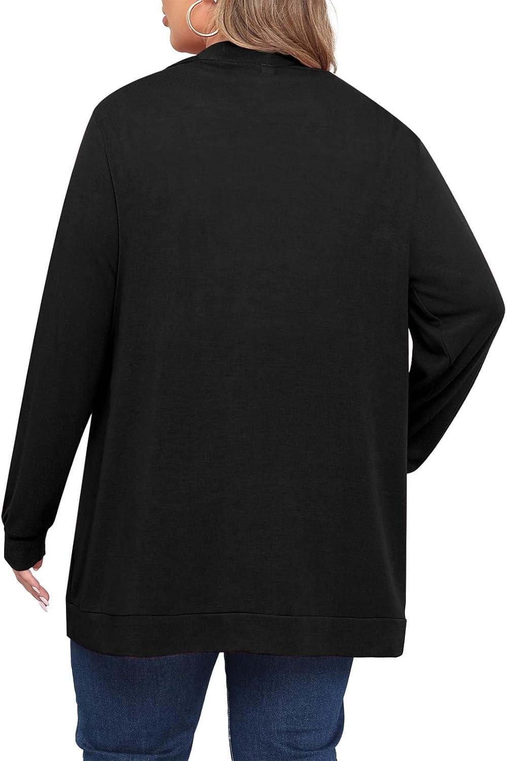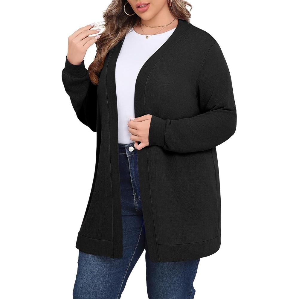 POSESHE Womens Plus Size Cardigan Sweater 2025 Fall Long Sleeve Lightweight Knit Open Front Casual Loose Cardigan(Black)