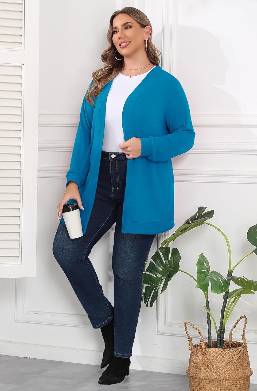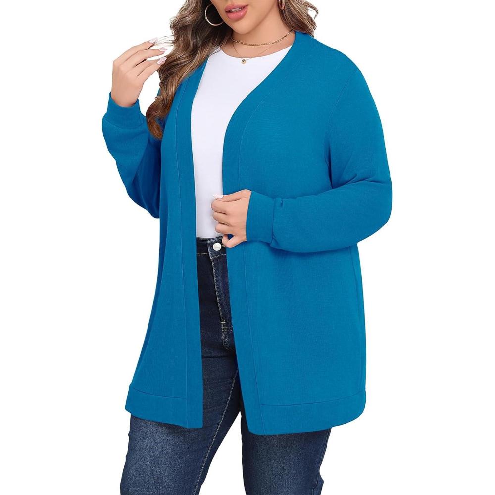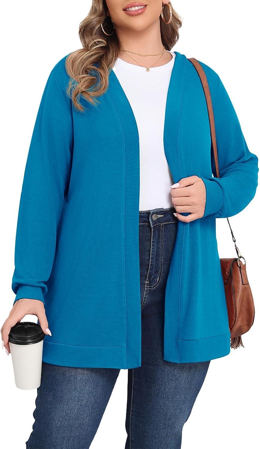 Save big on POSESHE Womens Plus Size Cardigan Sweater 2025 Fall Long Sleeve Lightweight Knit Open Front Casual Loose Cardigan(Lake Blue) during our summer blowout sale. Limited quantities available.