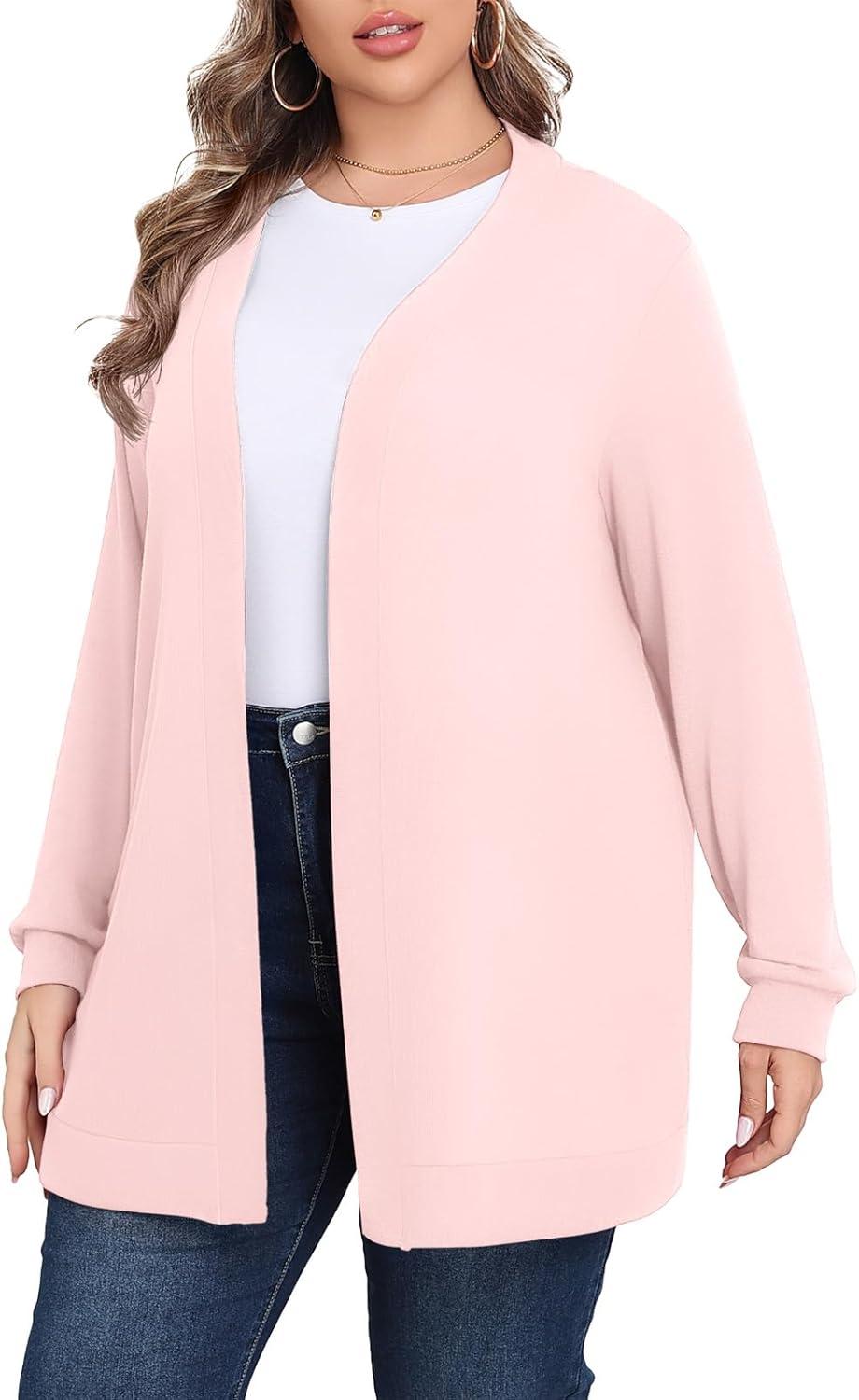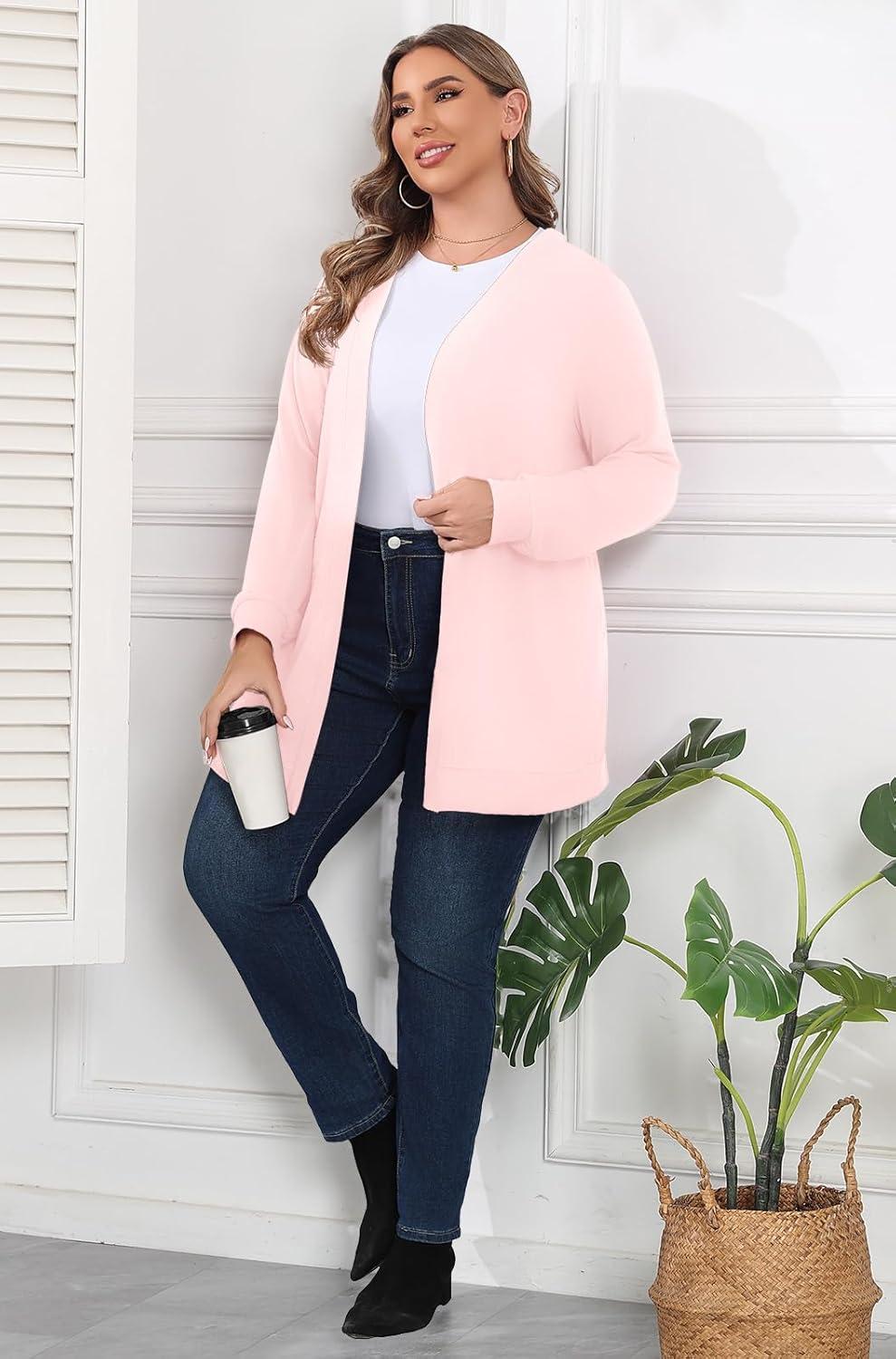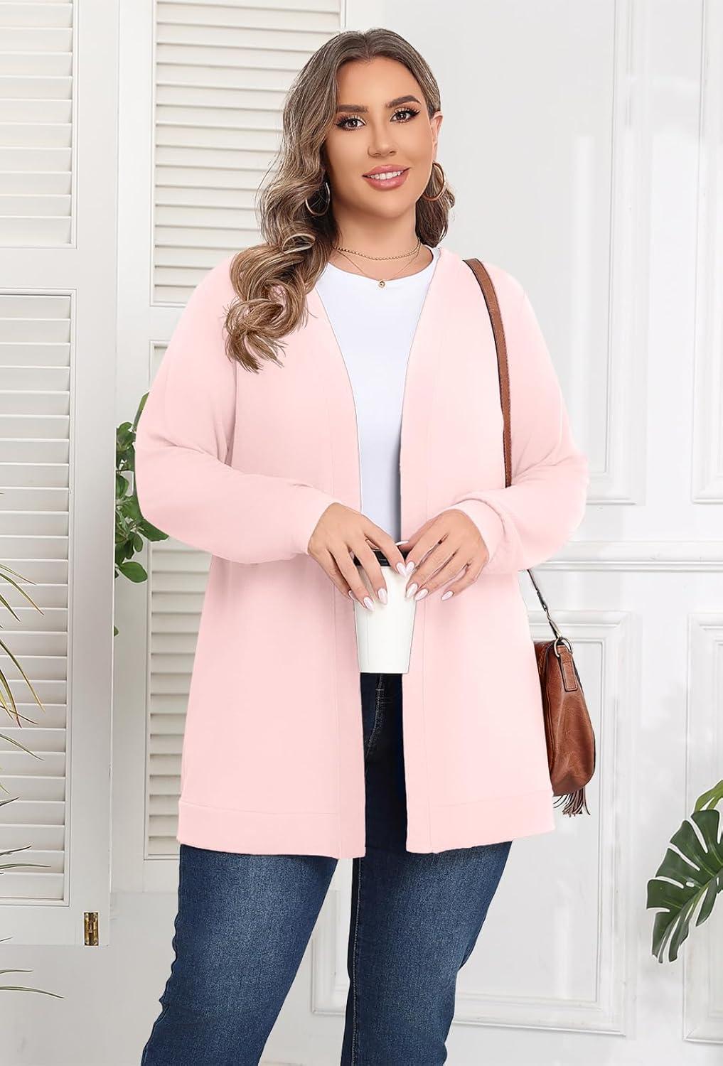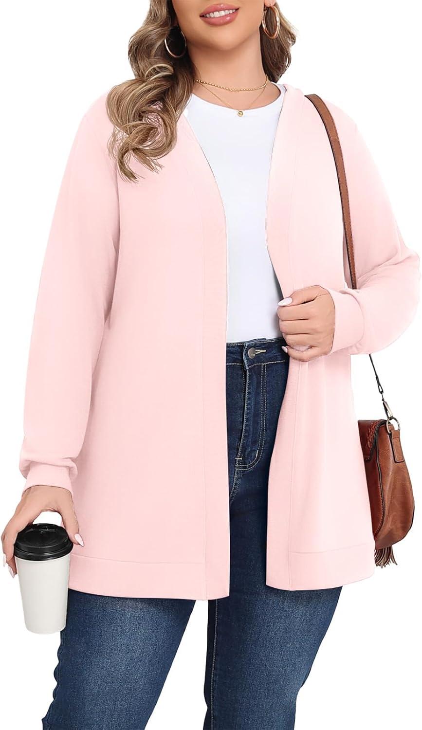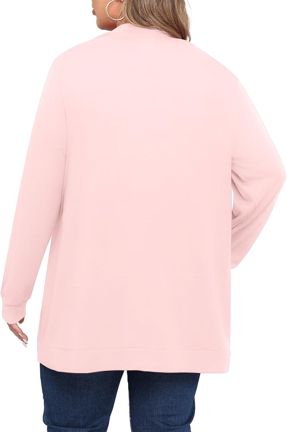 POSESHE Womens Plus Size Cardigan Sweater 2025 Fall Long Sleeve Lightweight Knit Open Front Casual Loose Cardigan(Light Pink)