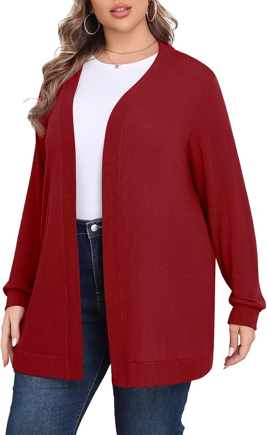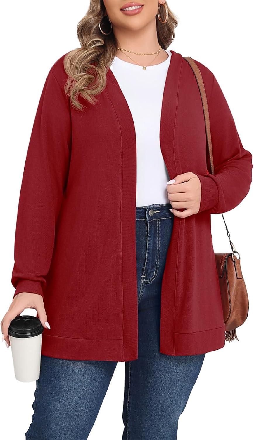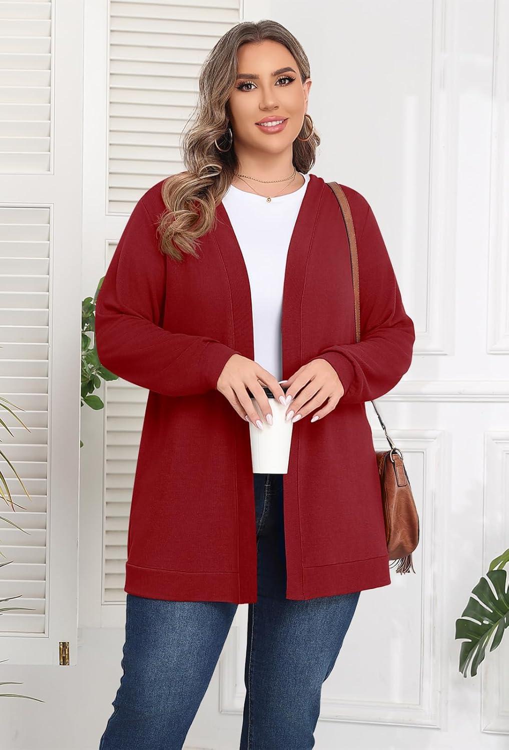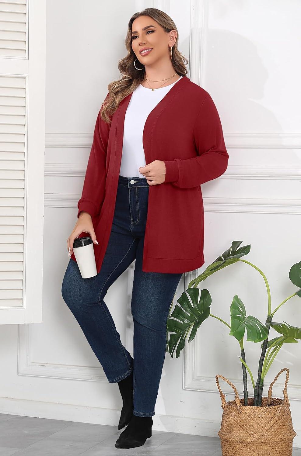 Get more for your money with our exclusive bundle deals on POSESHE Womens Plus Size Cardigan Sweater 2025 Fall Long Sleeve Lightweight Knit Open Front Casual Loose Cardigan(Red) and accessories.