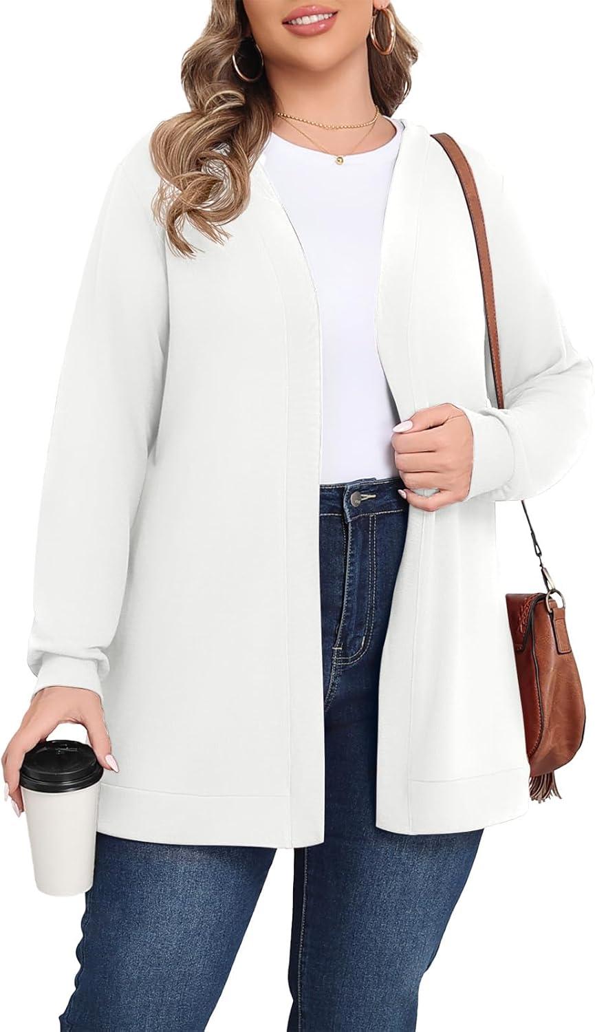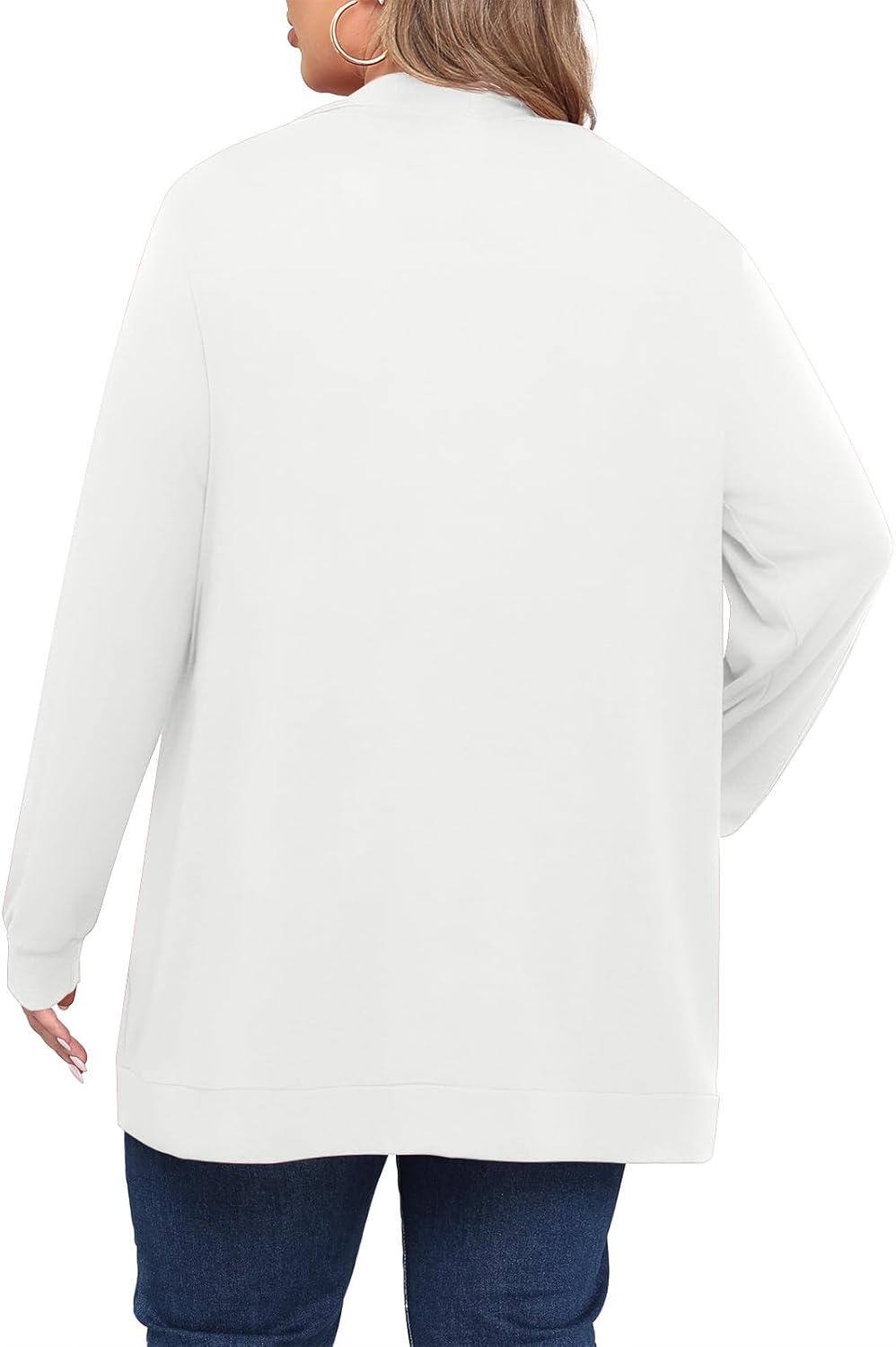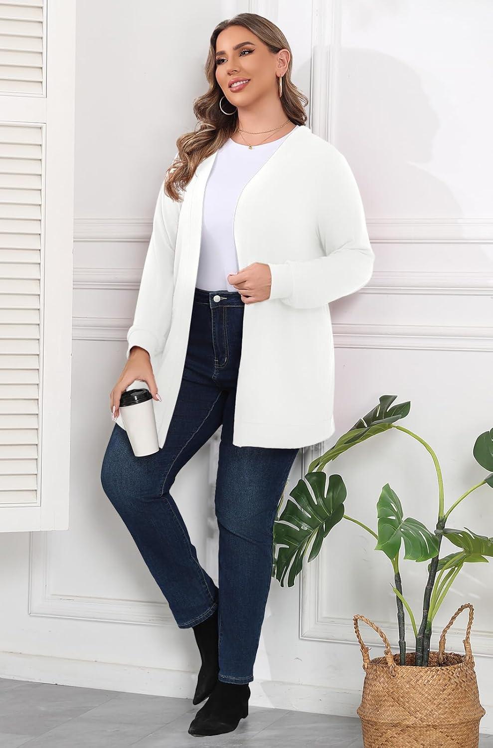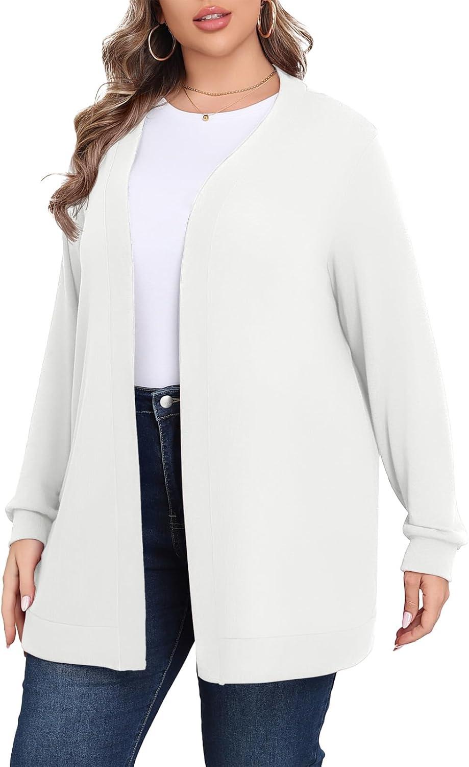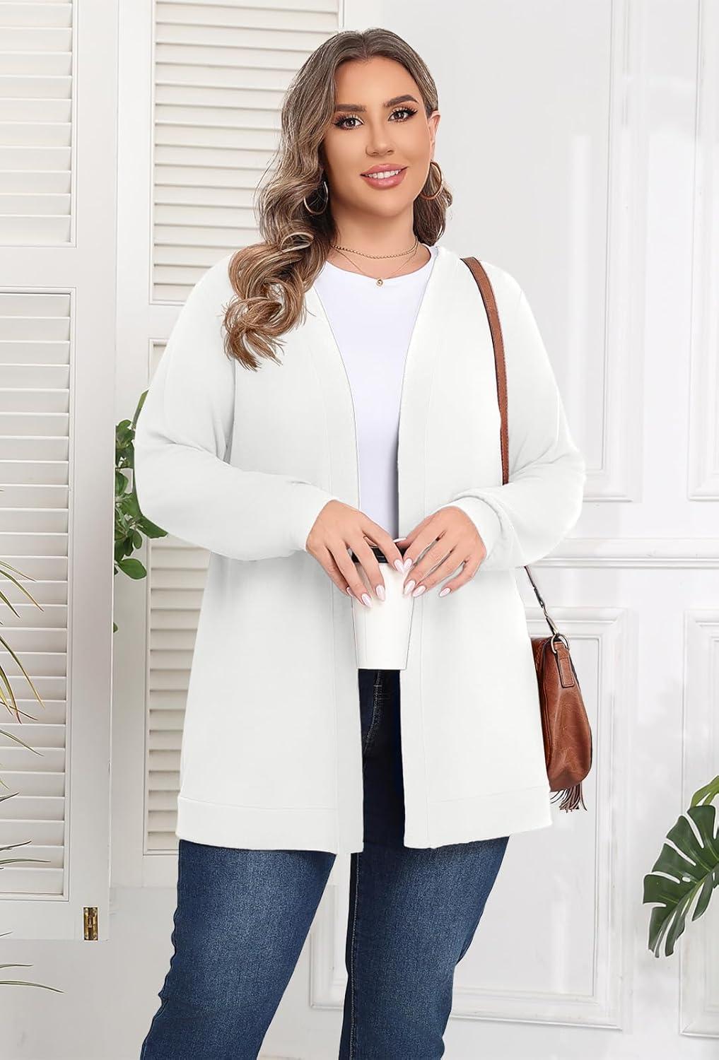 POSESHE Womens Plus Size Cardigan Sweater 2025 Fall Long Sleeve Lightweight Knit Open Front Casual Loose Cardigan(White)