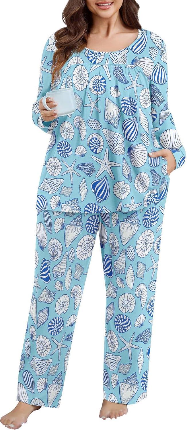 Be the first to review “POSESHE Women’s Plus Size Pajama Sets Long Sleeve 2 Piece Crew Neck Lounge Sleepwear Ladies Cute Pjs Sets with Pockets 2025(Blue Shell)” Cancel reply