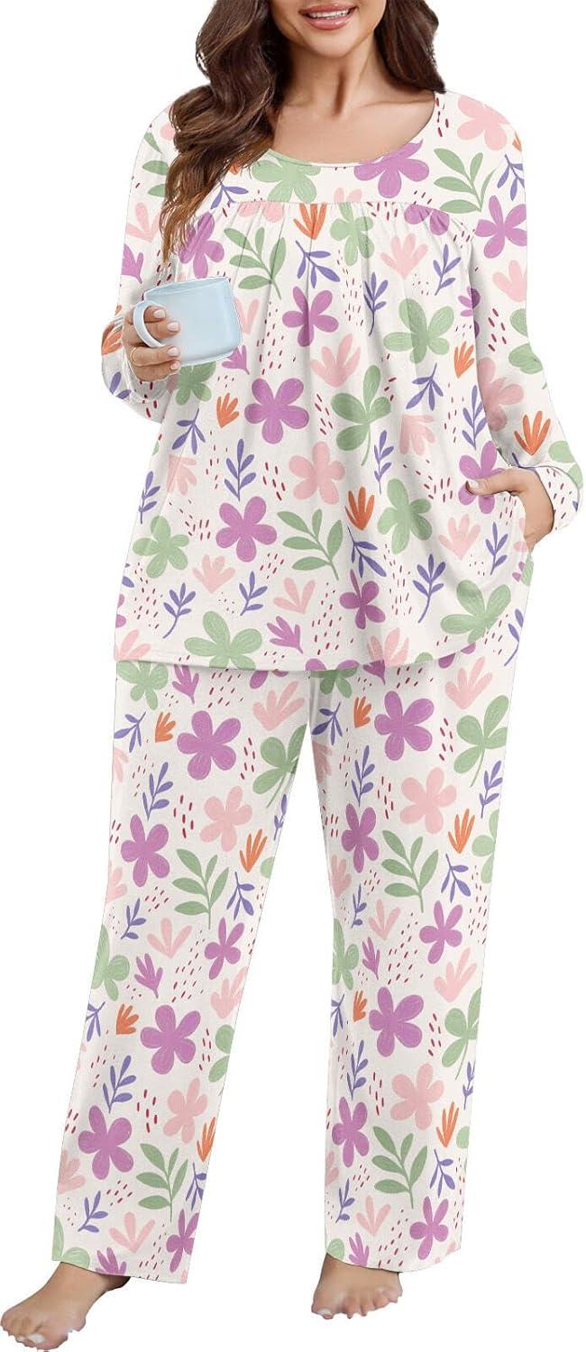 Be the first to review “POSESHE Women’s Plus Size Pajama Sets Long Sleeve 2 Piece Crew Neck Lounge Sleepwear Ladies Cute Pjs Sets with Pockets 2025(Purple Pink Leaf)” Cancel reply